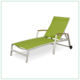 Camastro fabricado en estructura de aluminio recubierto con pintura anticorrosiva y malla de PVC “Textilene”. 100% para exterior. Cuenta con ruedas traseras. y descansa brazos con una aplicación de madera certificada de teca (FSC).