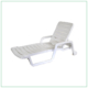 Camastro plegable y reclinable fabricado en estructura de aluminio recubierto con pintura anticorrosiva y malla de PVC. 100% para exterior. Hecho en Alemania.