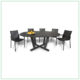 Sillón loveseat fabricado en estructura de aluminio cubierto con pintura anticorrosiva y HPL (polímero laminado de alta densidad) los cojines están tapizados con tela Sunbrella y el relleno es de espuma Dry Fast 100% para exterior. Hecha en Indonesia.
