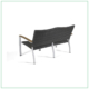 Sillón fabricado en estructura de aluminio recubierto con pintura anticorrosiva y malla de PVC “Textilene”; los descansa brazos tienen una aplicación de madera de teca certificada (FCS). 100% para exterior.