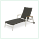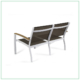 Sillón fabricado en estructura de aluminio recubierto con pintura anticorrosiva y malla de PVC “Textilene”; los descansa brazos tienen una aplicación de madera de teca certificada (FCS). 100% para exterior.