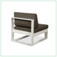 Sillón fabricado en armazón de aluminio y malla “Textilene”. Los cojines, de 12 cms de espesor, están tapizados con tela marca “Sunbella” y rellenos con espuma “Dry Fast”. 100% para exterior.