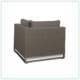 Sillón fabricado en armazón de aluminio con resina imitación mimbre marca “Wintech” y tapizado en tela “Texfabric”. Cojines tapizados con tela “Sunbrella” y relleno con espuma “Dry Fast”. 100% para exterior.