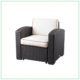 Sillón individual fabricado en inyección de resina de polipropileno de alta resistencia en estampado de mimbre. Resistente a los rayos UV, no se decolora y es 100% para exterior; desarmable. Cojines tapizados en tela para exterior.
